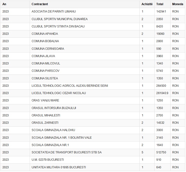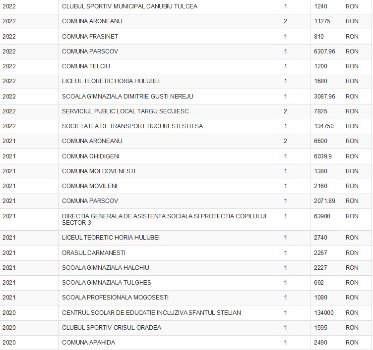 Tot în 2020, firma a furnizat două microbuze pentru transportul elevilor si a cadrelor didactice din orașul Stefănești, judetul Argeș, valoarea contractului fiind de 419.500 lei.