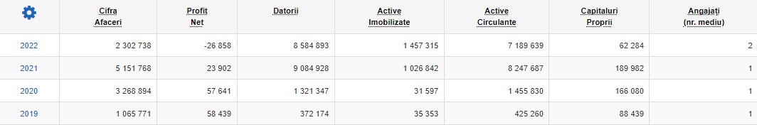 Cooperativa debitoare a fost înființată în 2019 și a raportat activitate și în 2022. Datoriile pe care le-a avut la finalul anului 2022 sunt de 8.584.893 lei.
