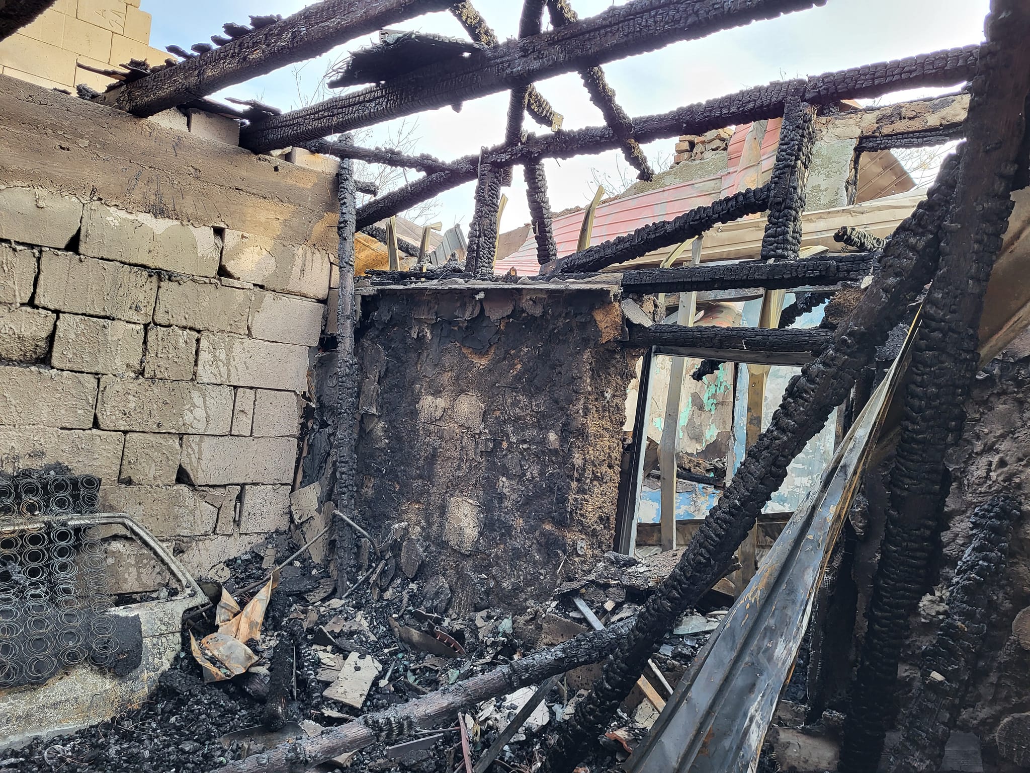 Imobilul este nelocuibil, pereții întregii case fiind făcuți scrum de flăcări. Acoperișul a ars aproape în totalitate, incendiu extinzându-se și la anexele locuinței.
