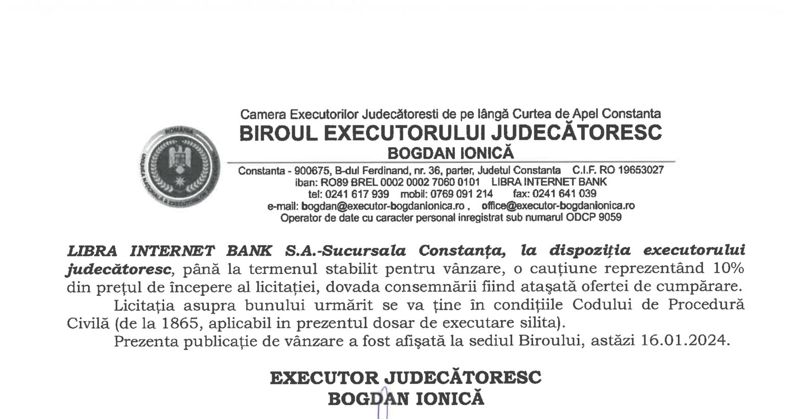 Publicația de vânzare poate fi consultată în cele ce urmează: